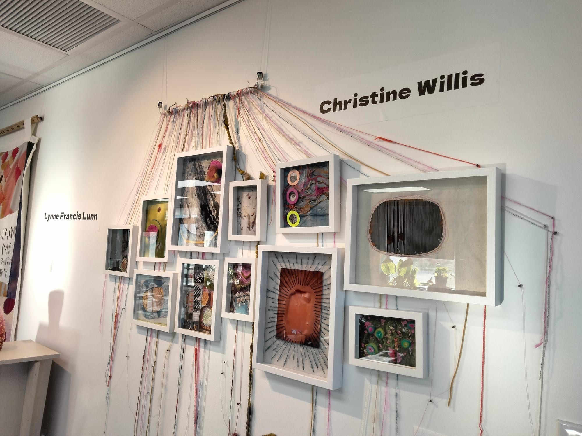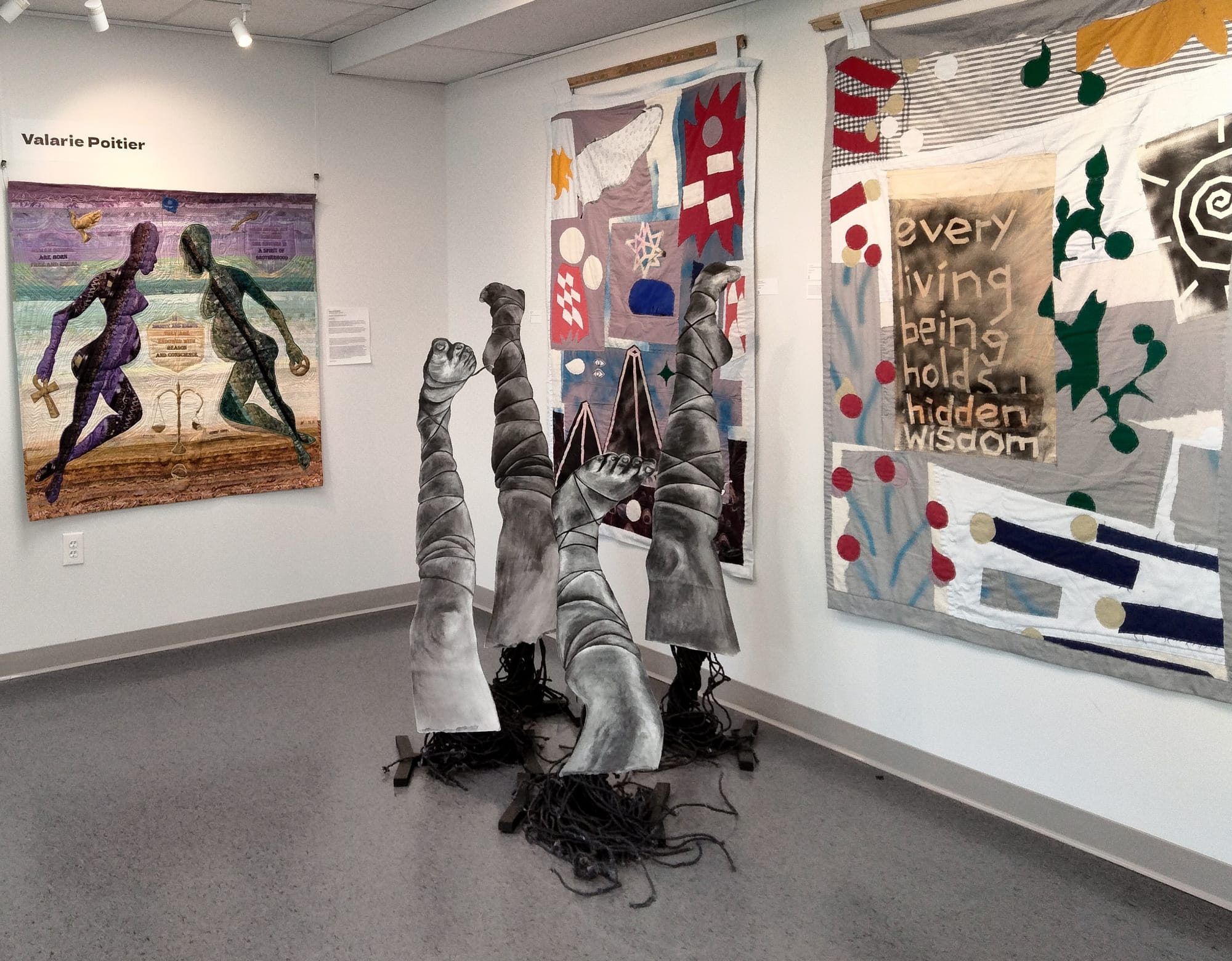 The open space inside is well lit and currently features an exhibit called, “The Threads That tie Us,” which focuses on fiber arts.
