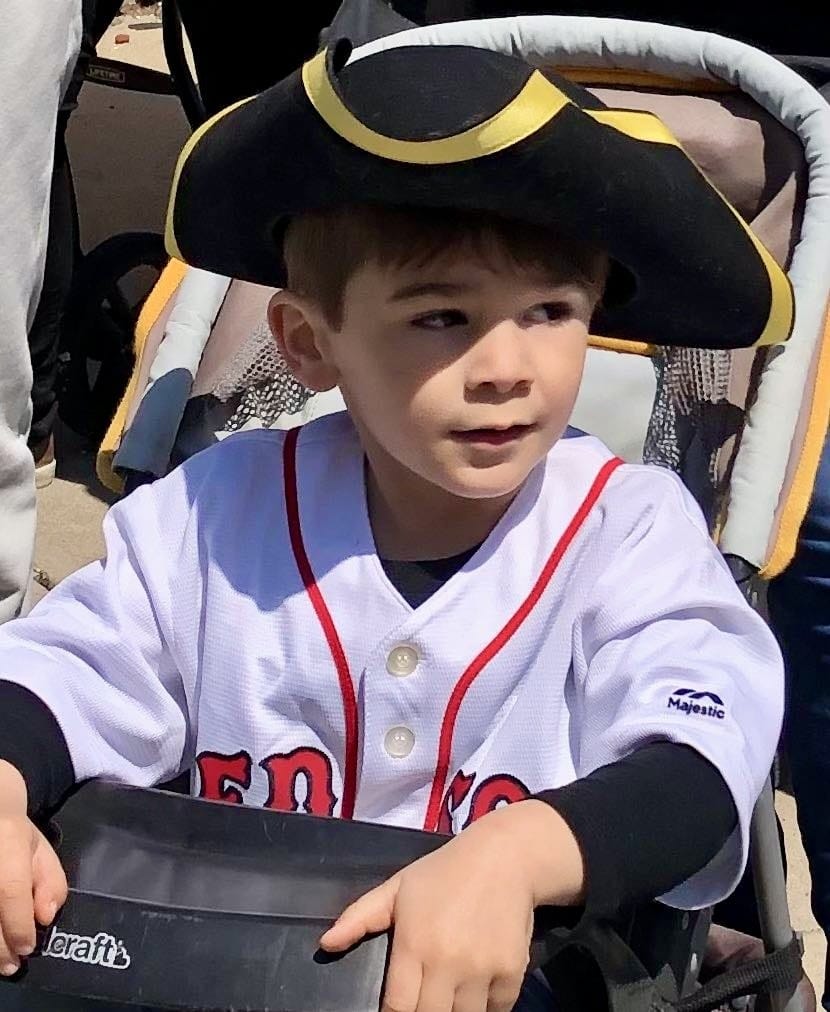Sporting a Red Sox shirt and a tricorn hat befitting the occasion, Jack Laskey sat
