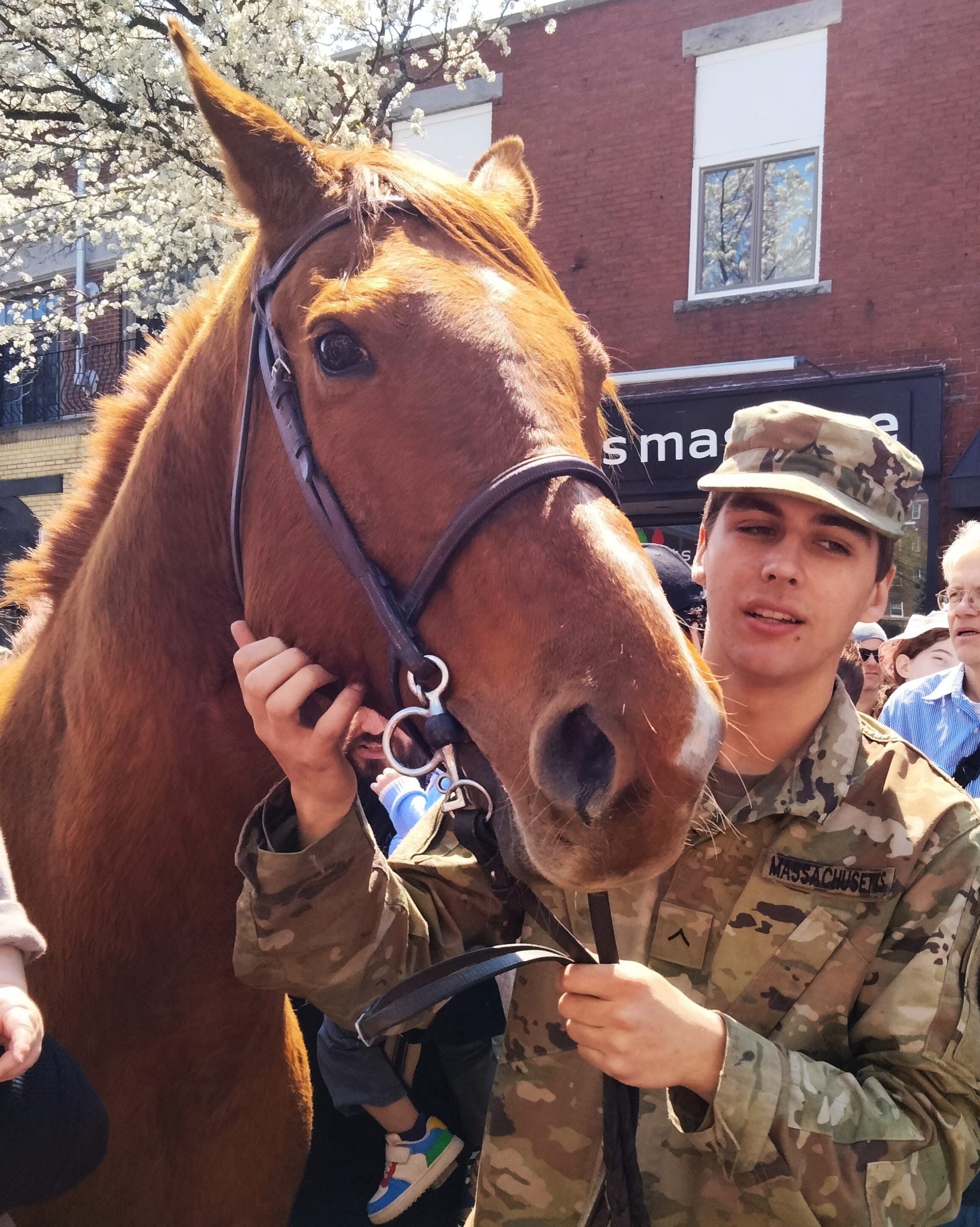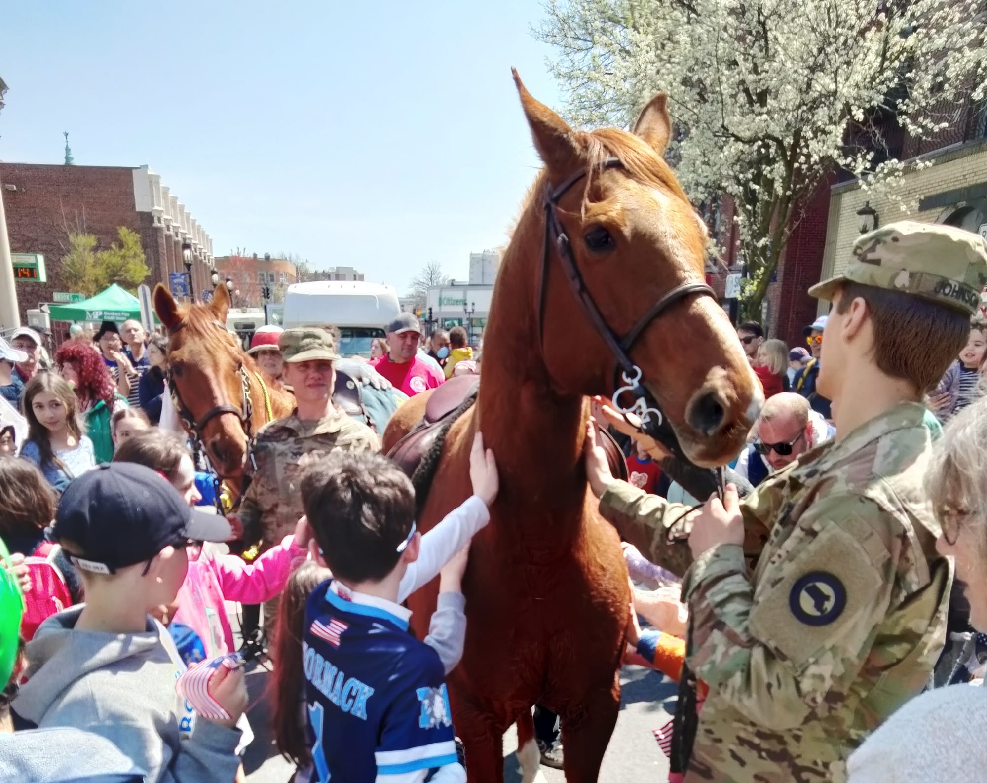 After Reale’s remarks, people got a chance to pet Union and the other horse, Liberty, and to meet the young members of the Lancers who tended to the horses during the event.