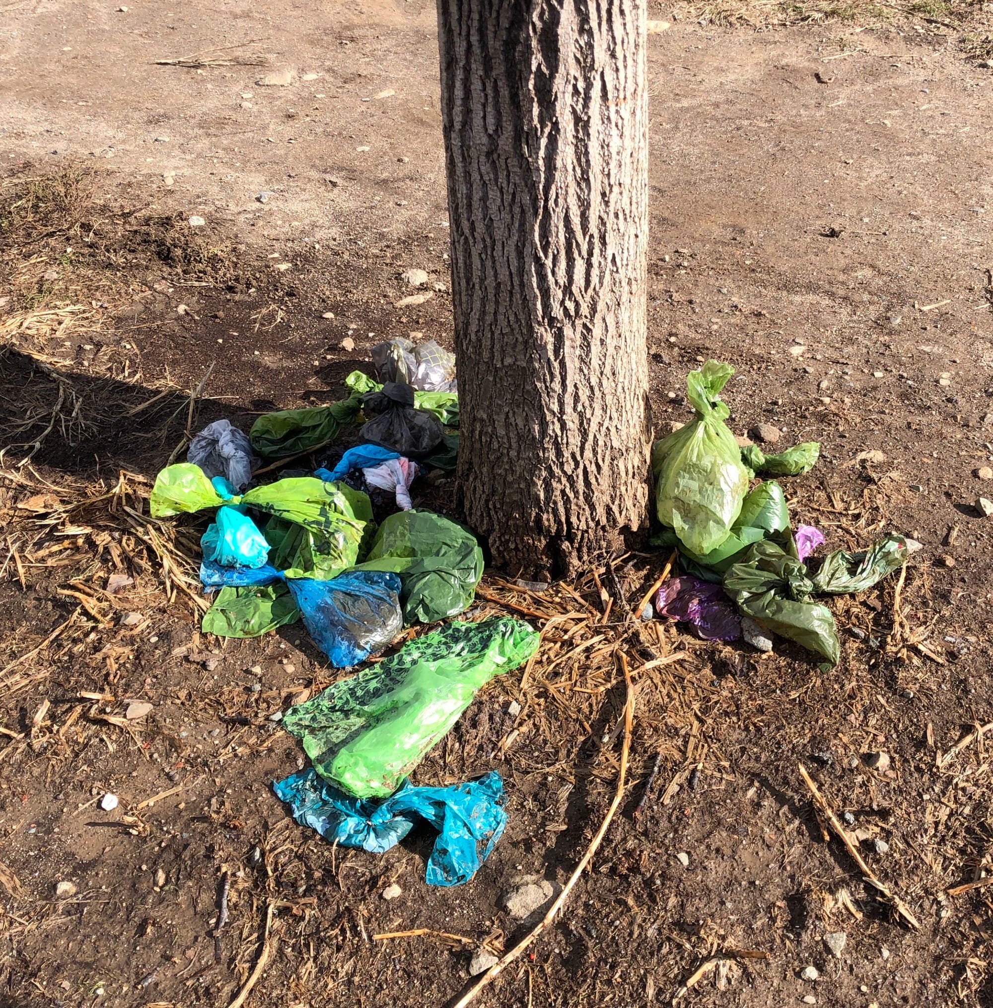 “Yes, there’s definitely a trash problem, but when you look at the overall volume, the pet waste is up there,” he said. “People actually leave pyramids of them at the trail heads! We’ve even found poop bags hanging from tree branches because people fling them into the park.”
