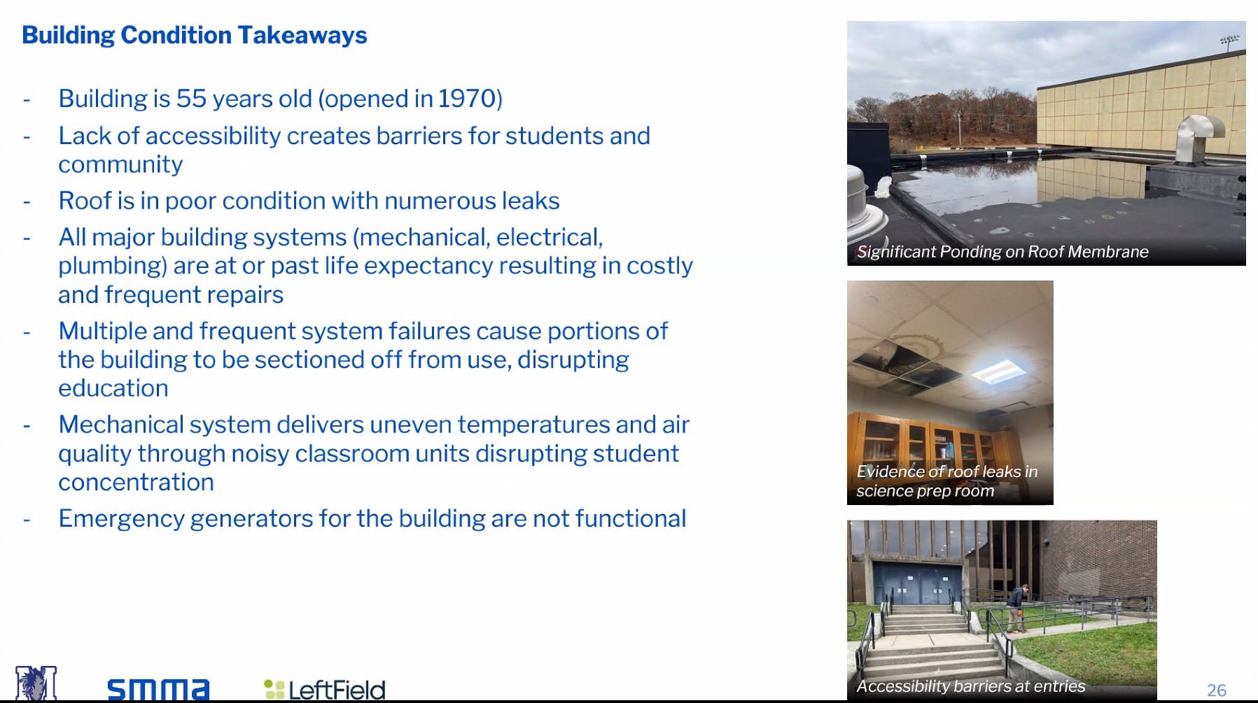 “The majority of the information that is being submitted at this stage in the project is a lot of information gathering and fact-finding that we’re doing throughout the school, not just on the inside, but we’re also evaluating all of the conditions of the site,” said LeftField Project Manager Matt Gulino said of the Feasibility Study.”