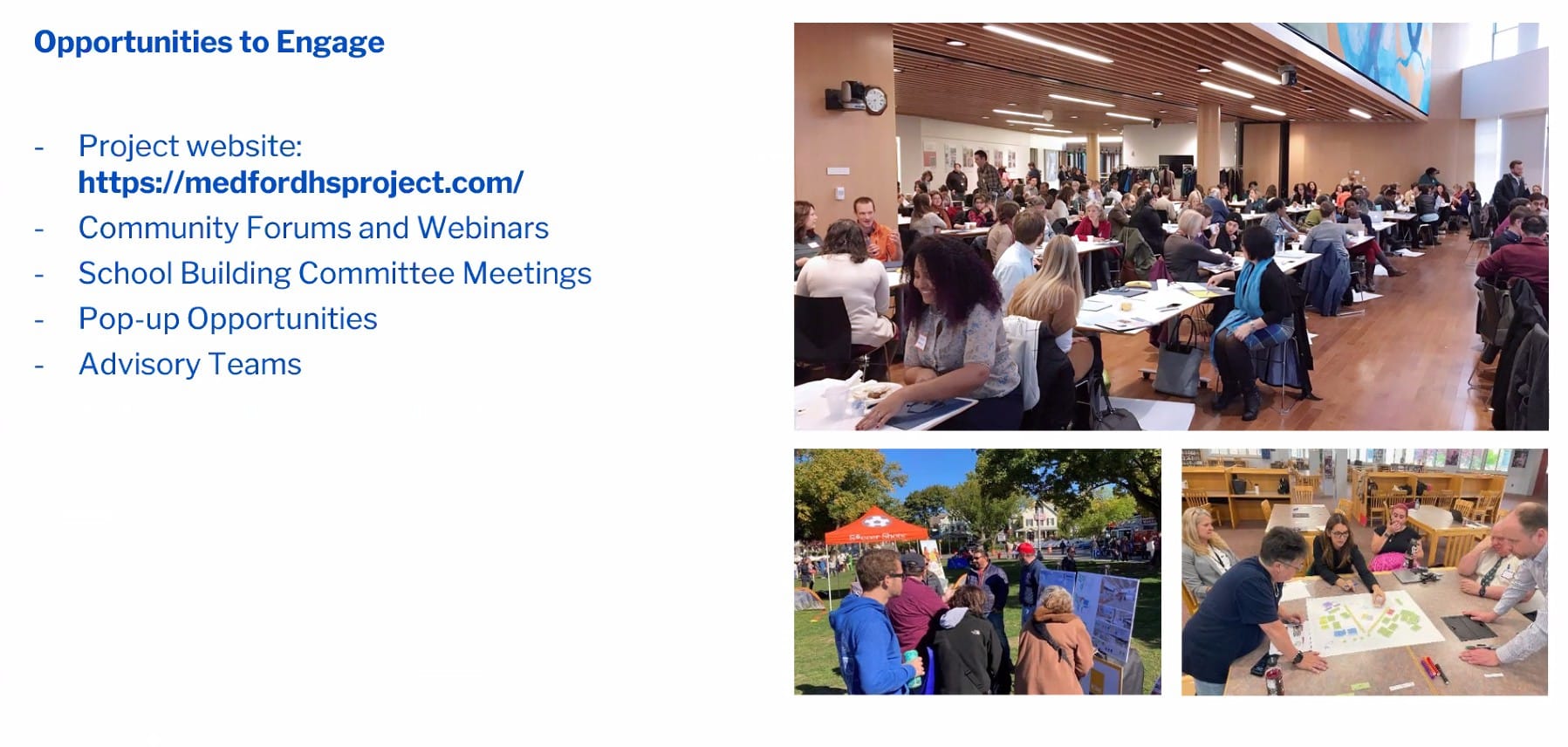 She said the community meeting, like all the building committee’s meetings, are also recorded and available for the public on the Medford Public Schools YouTube channel. She added the building committee meetings are about 90 minutes long.