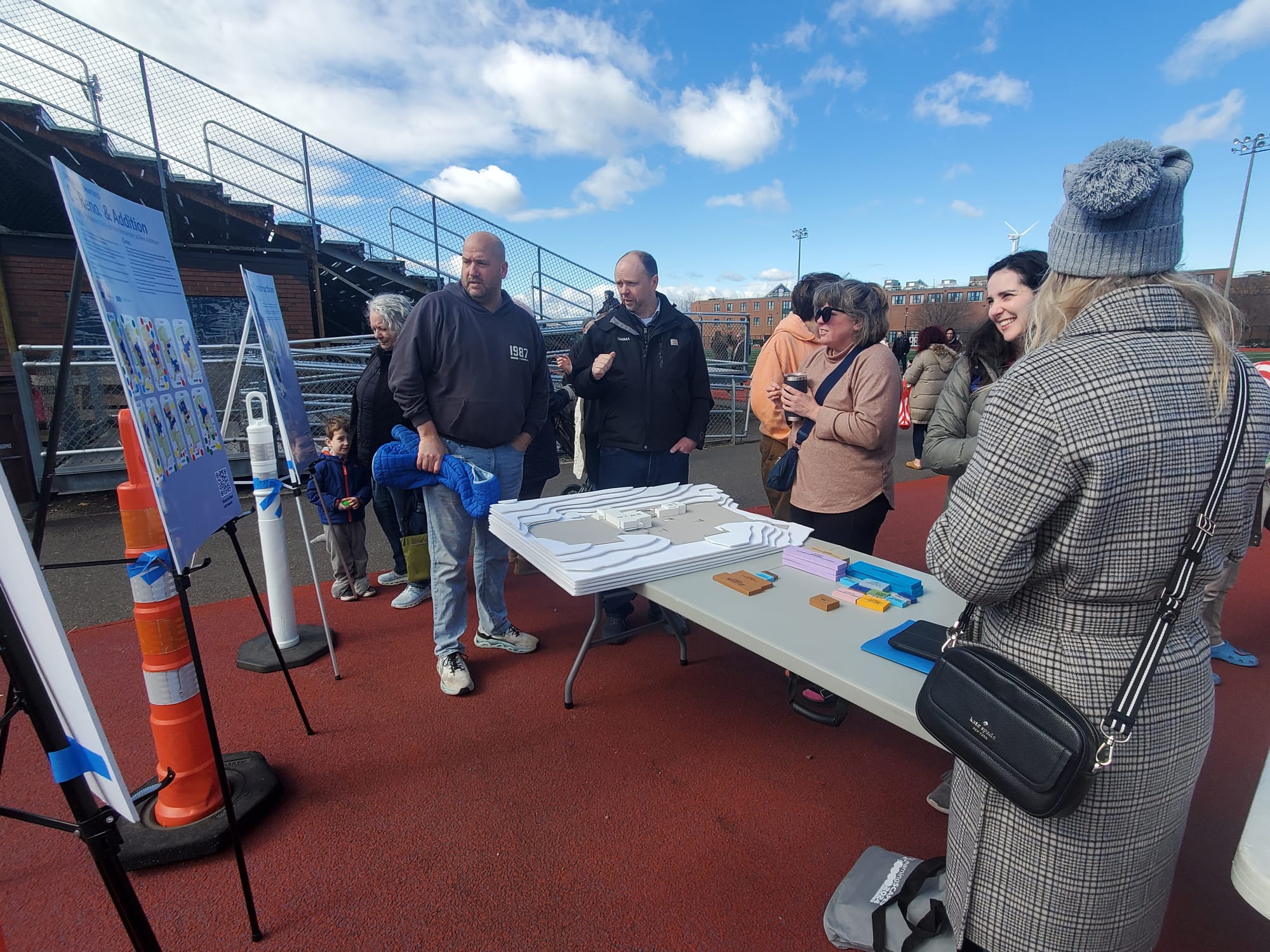 And School Committee Vice Chair Jenny Graham was at the event, along with representatives of LeftField and SMMA, operations managers and architects of the new Medford High School building project. Residents took advantage of checking out a model and alternatives to what a new high school could look like and asked questions.
