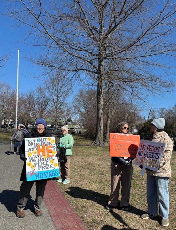 Dozens of people gathered March 28 morning in Winchester for the third “No Kings” event to protest President Trump’s policies, reject authoritarianism and defend constitutional rights.