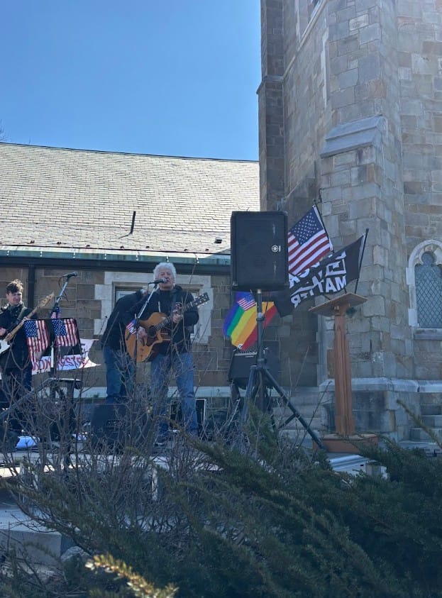 Performers Willie T & Doctor X performed their original song “No Kings.” Later, Nick Lees performed Jesse Welles’ “Sometimes You Bomb Iran” and two other songs.