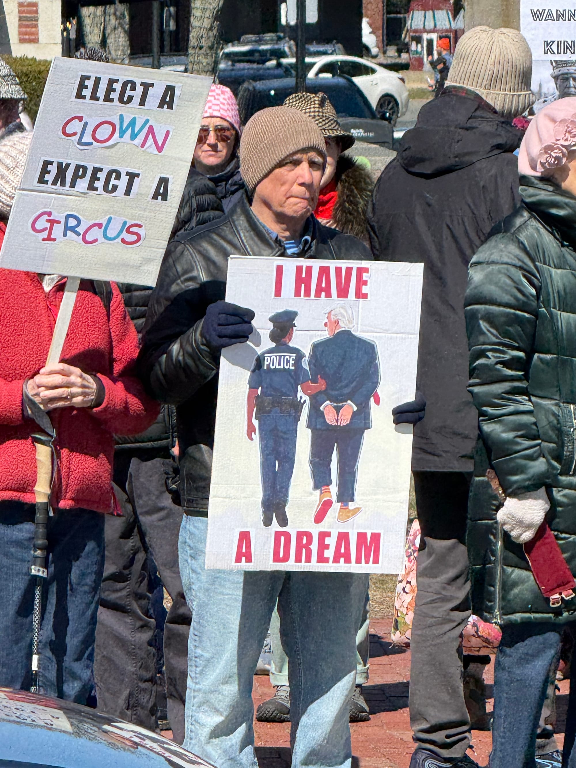 Medford resident Patricia Egan said she protested because she wants to prevent people from being drafted into an “unjust war,” to support immigrants like her grandparents, and to see Trump impeached. She said she didn’t see as many children or families at this protest as the last one she went to in the fall.