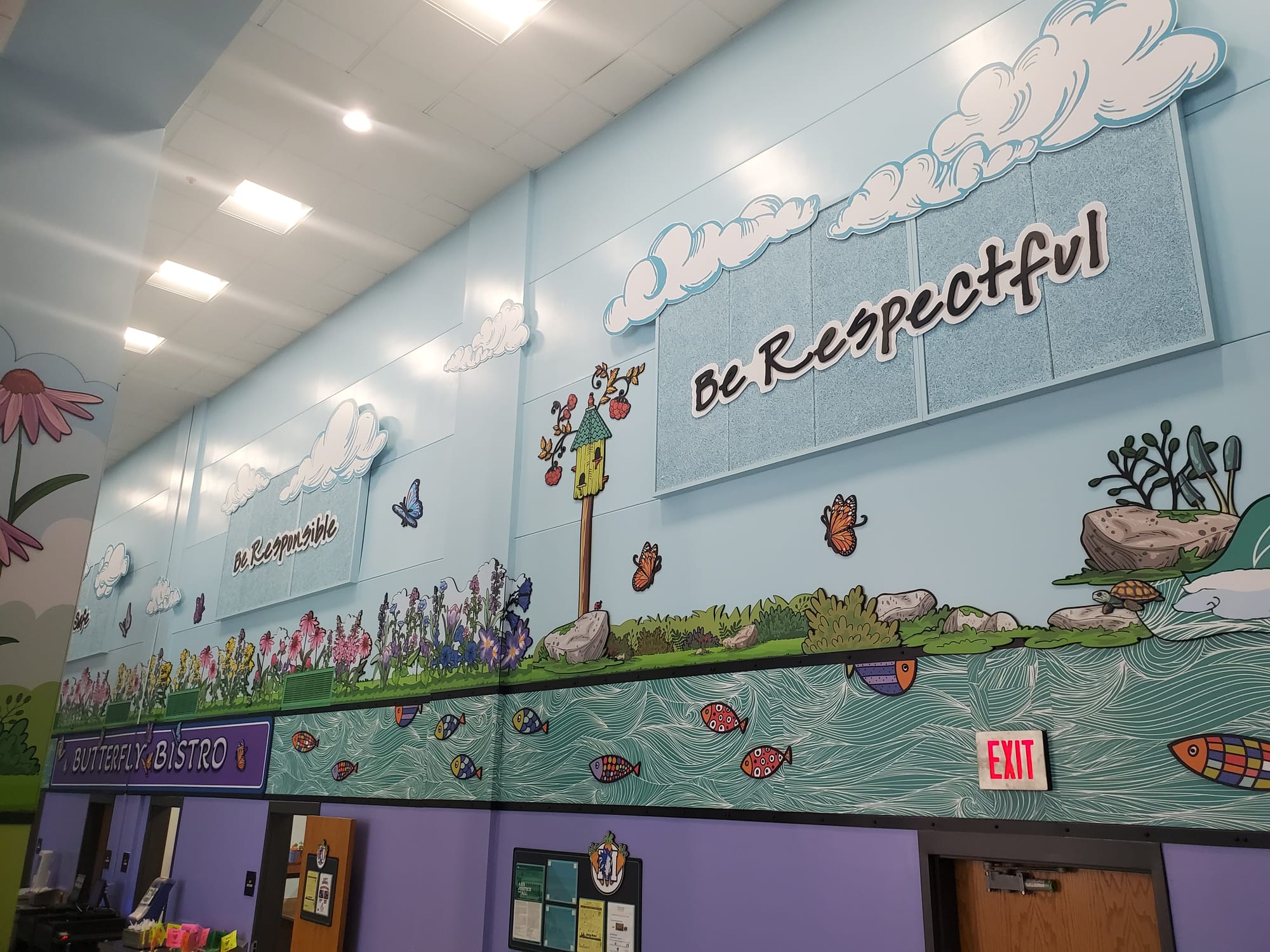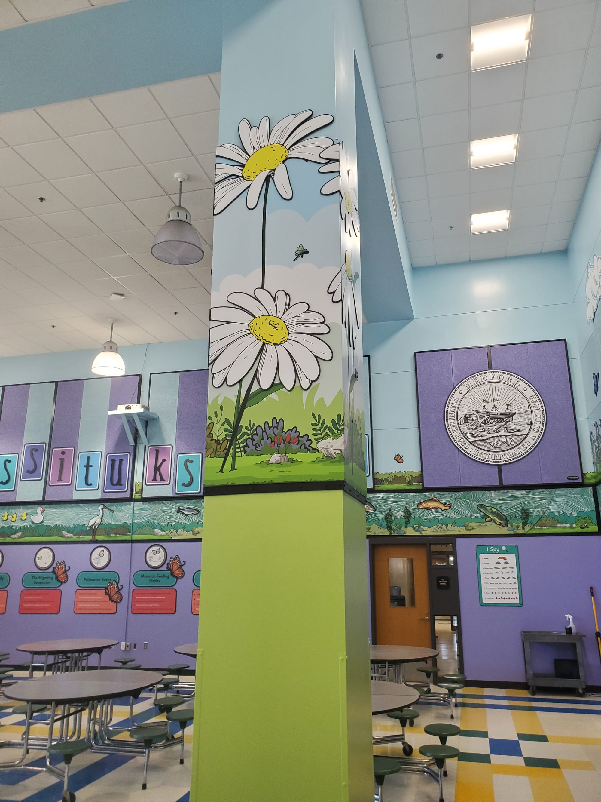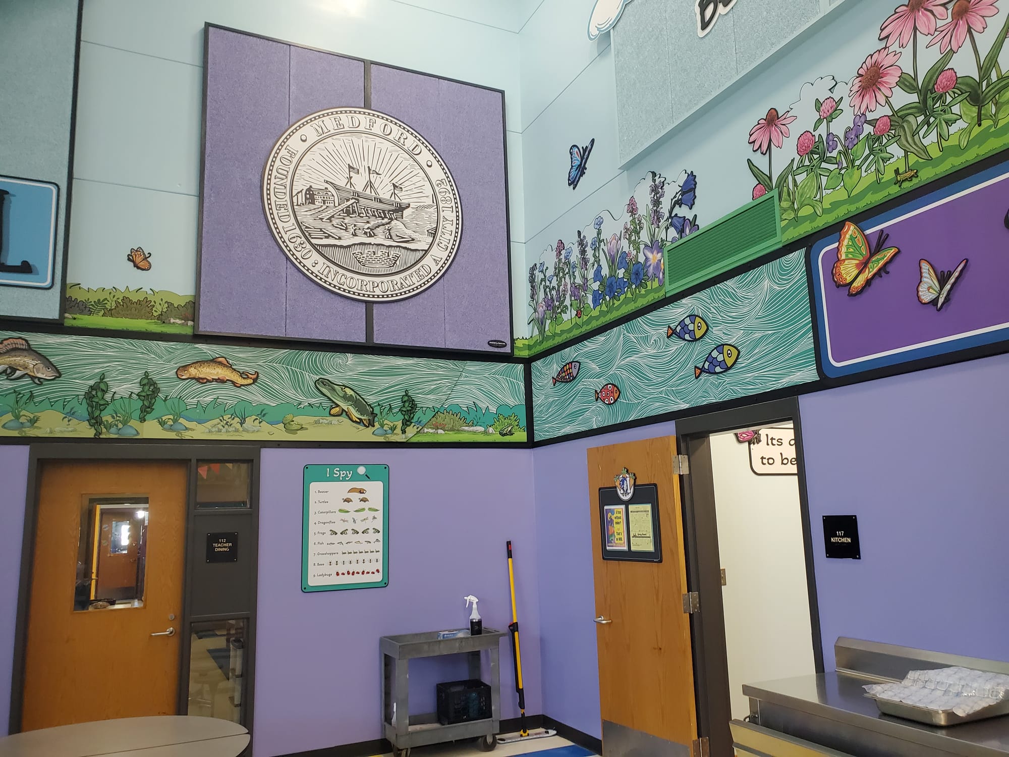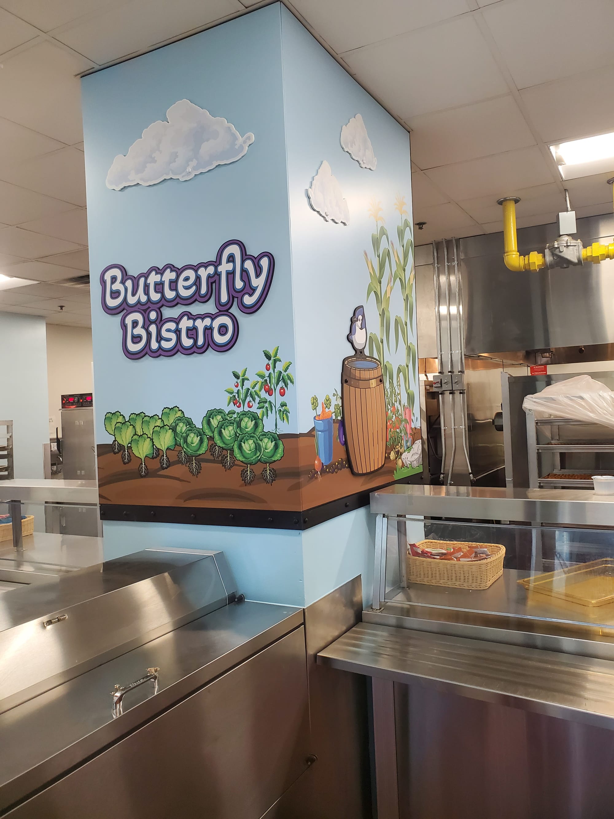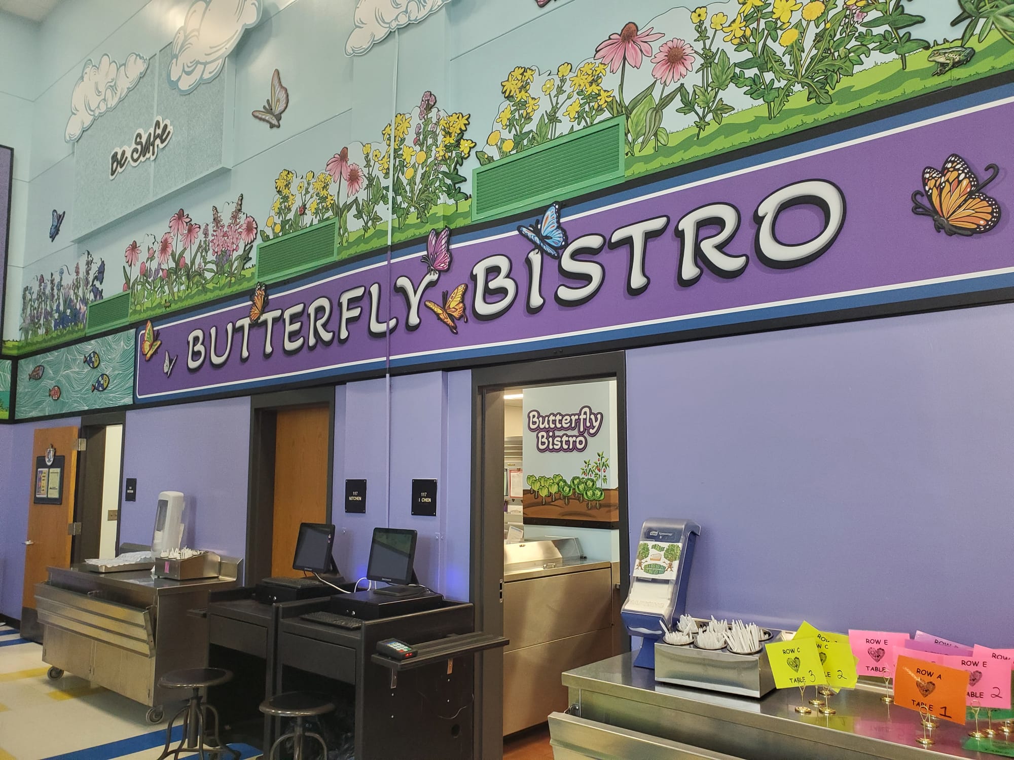 During school vacation week, the Missituk School cafeteria underwent a dramatic transformation, thanks to a planned update by a Worcester company called Imaginate Your Space. The update didn’t just include a bit of paint, but an entire makeover that promotes the identity of the school community and its monarch butterfly mascot.