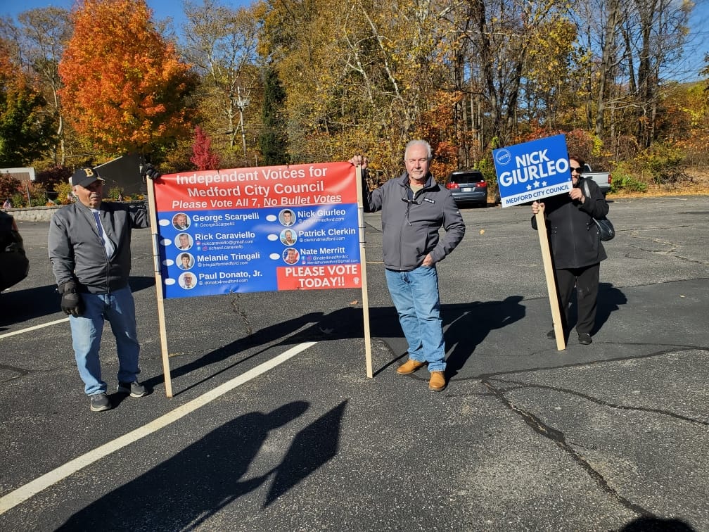 It’s been a busy day at the city’s polling locations, as candidates and supporters hold signs and residents cast their ballots. GOTTA KNOW MEDFORD STAFF PHOTOS/NELL ESCOBAR COAKLEY