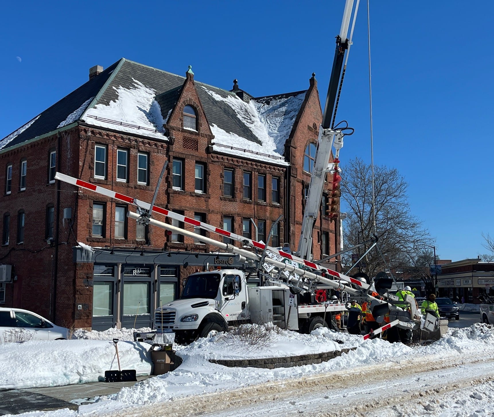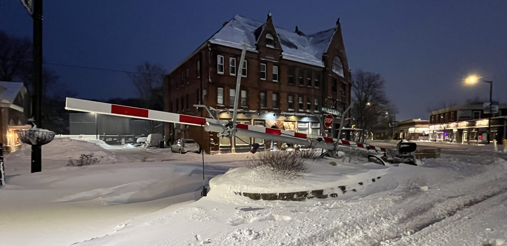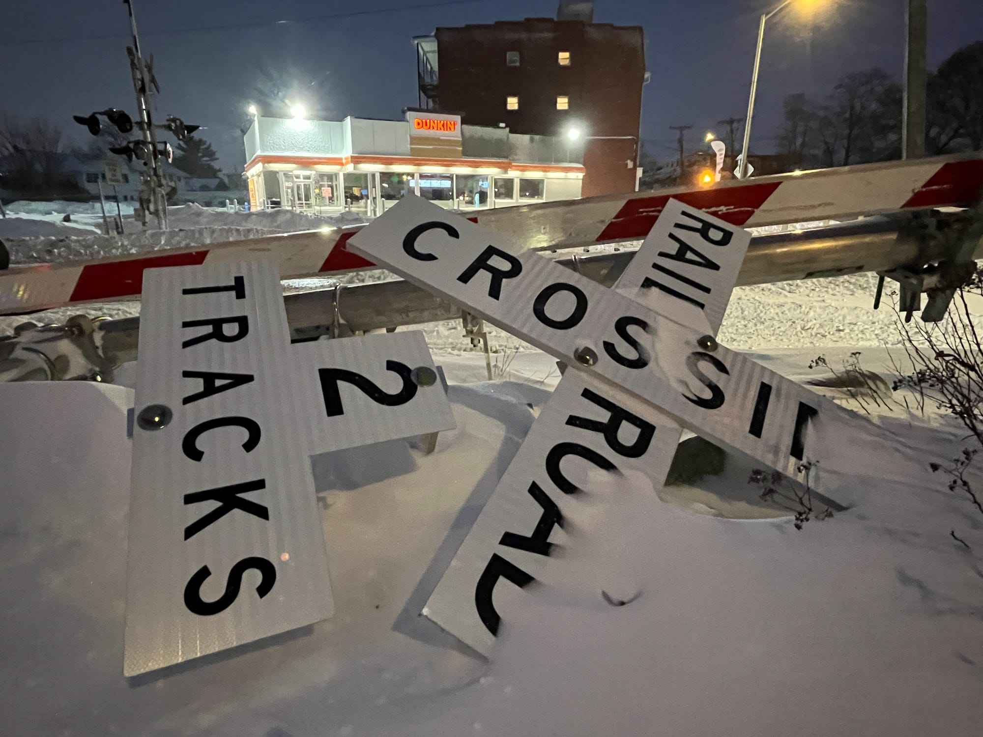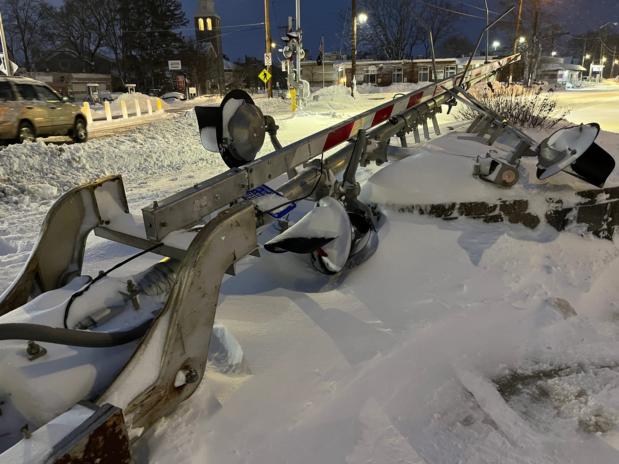 We put out a call for snow photos after the storm. Matt Wilson sent in photos of scenes from Playstead Road, and Ken Krause got some shots of a railroad crossing gate that came down during the storm. Thank you to Matt and Ken for sharing these: