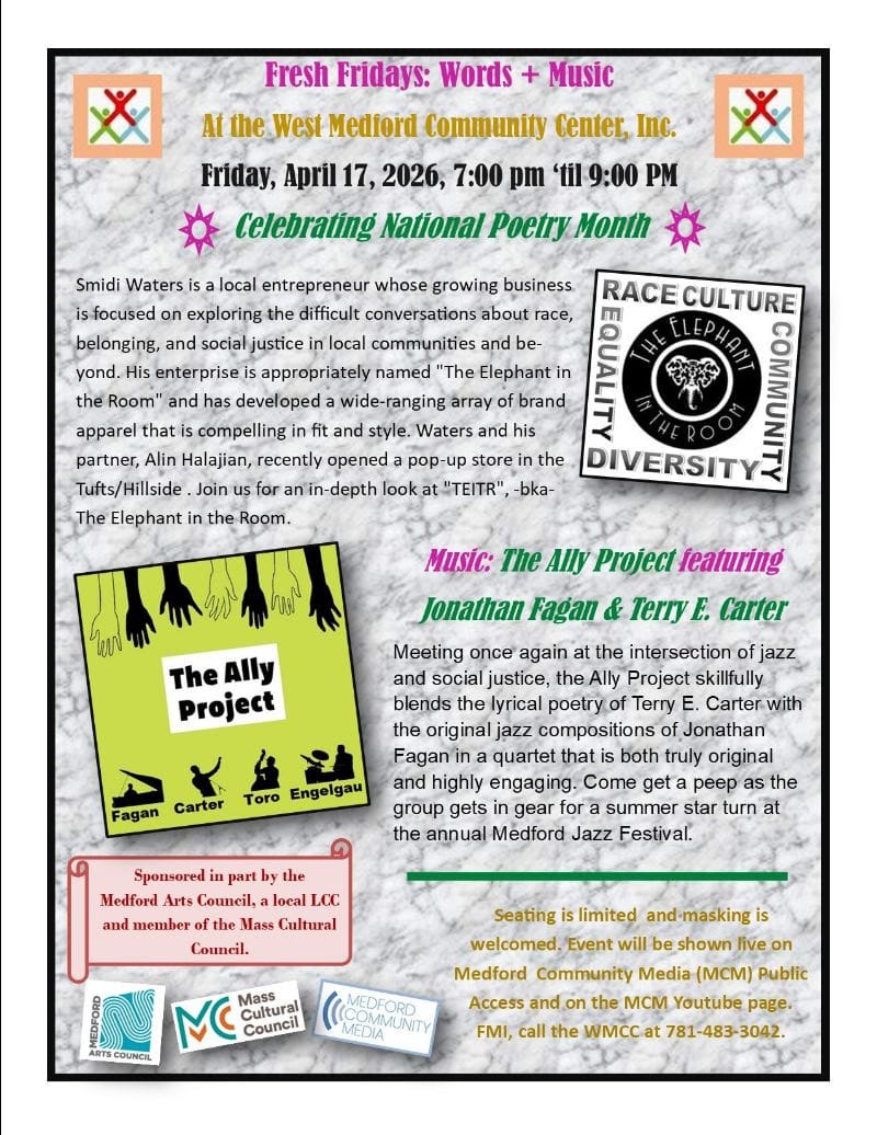 Today we've got music, meetings galore, art sessions, kids' activities, trivia, and a talk by journalist Audie Cornish. Plus, the resources of, and ways to get involved with, the Mystic Valley Area branch of the NAACP.