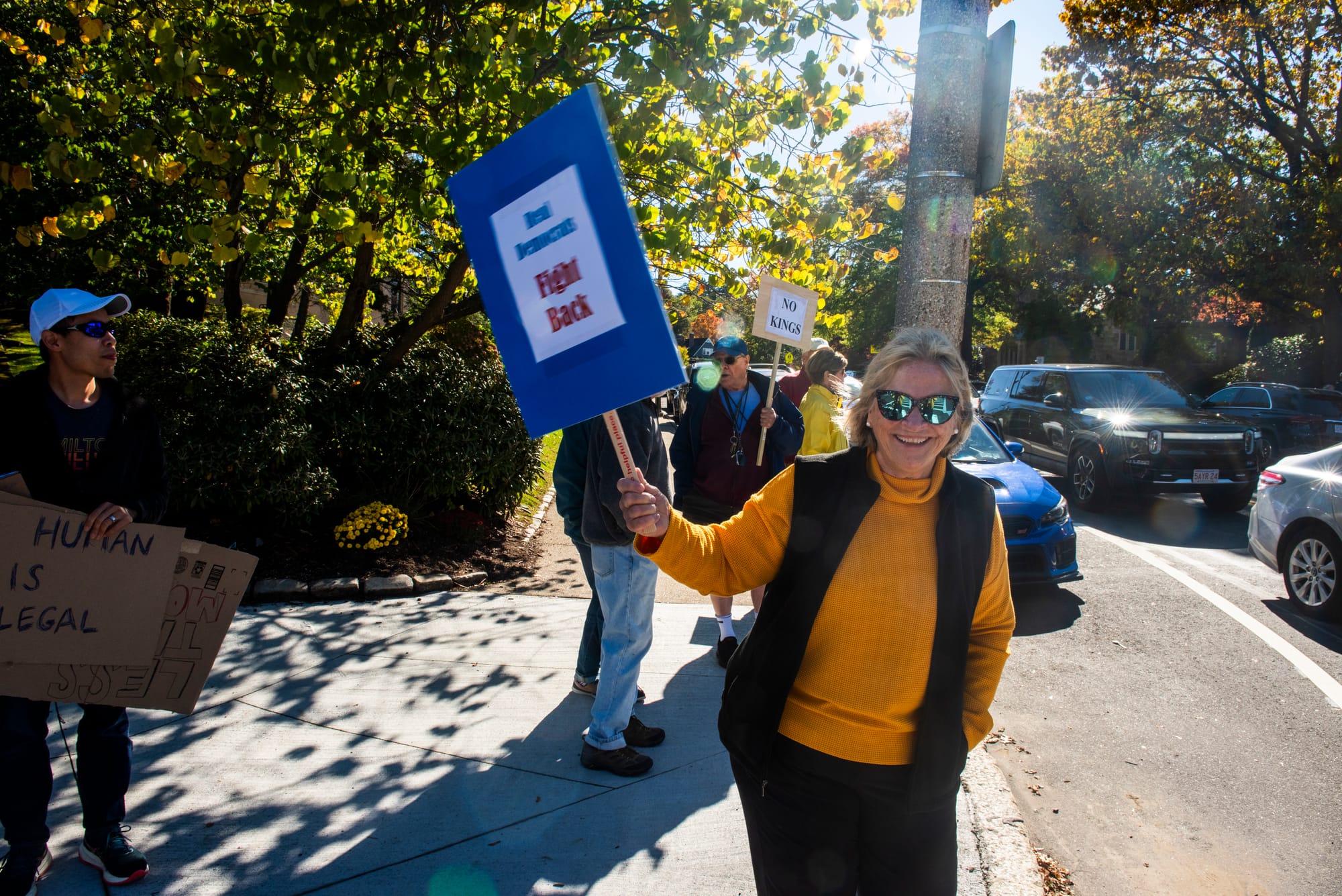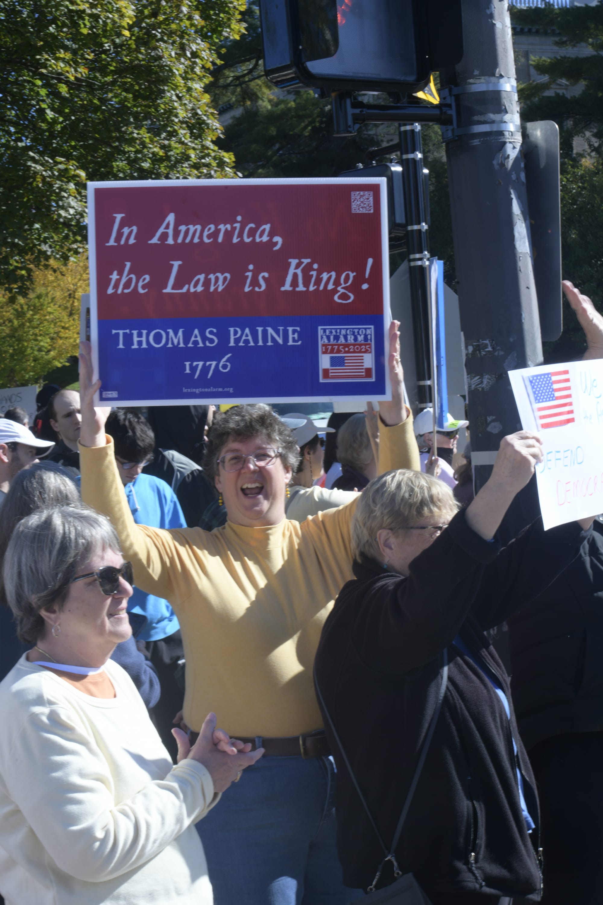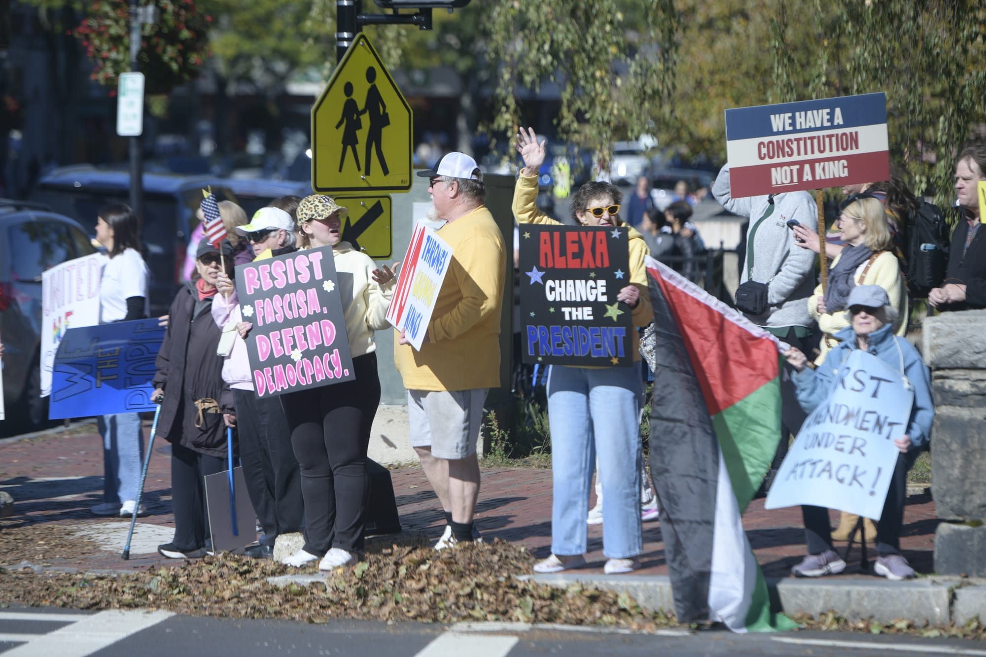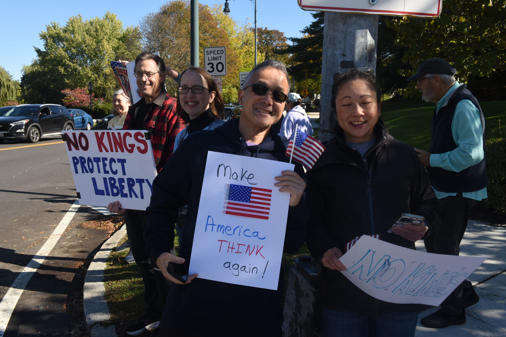 No Kings rally draws more than 800 people, including Medford residents, to Winchester