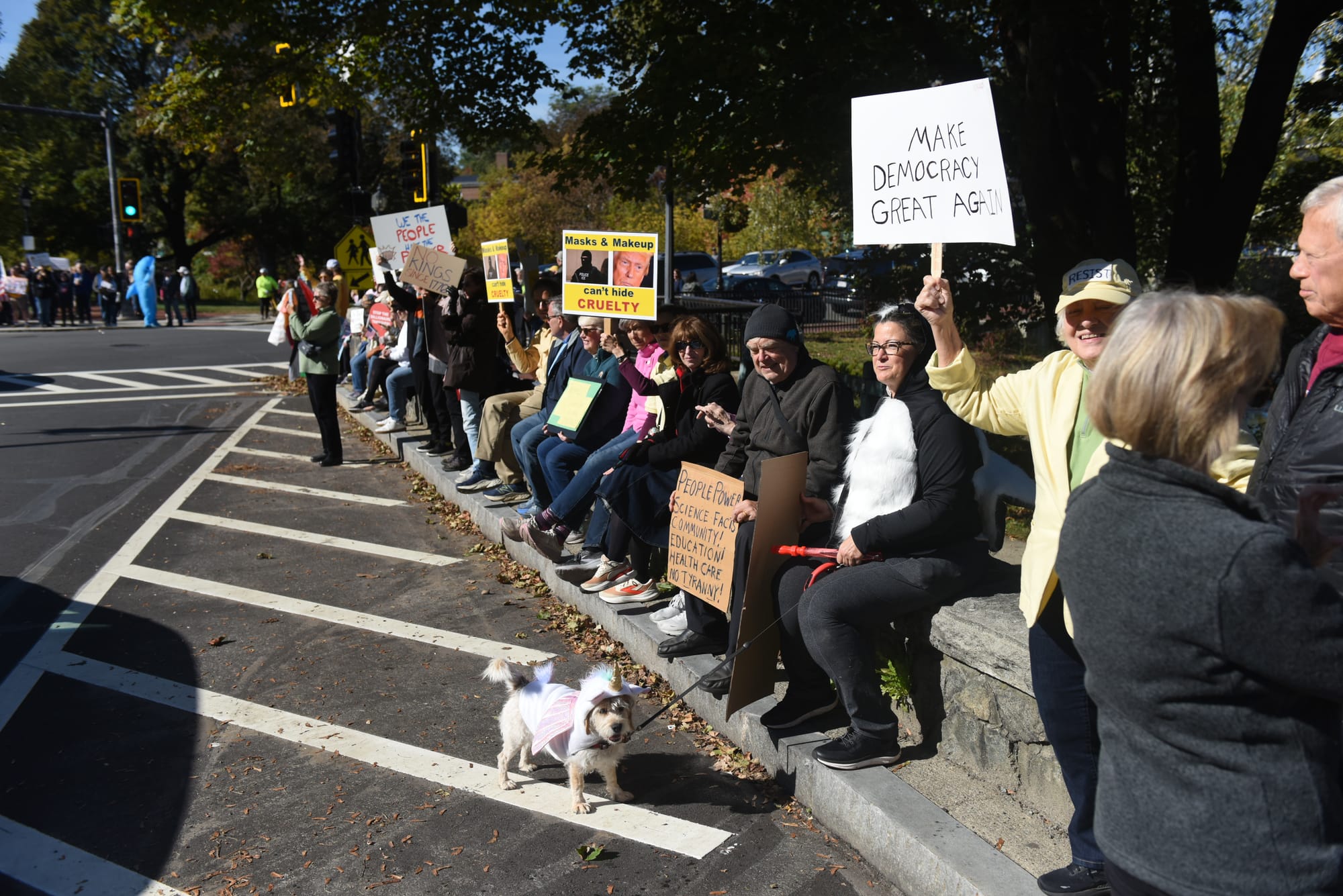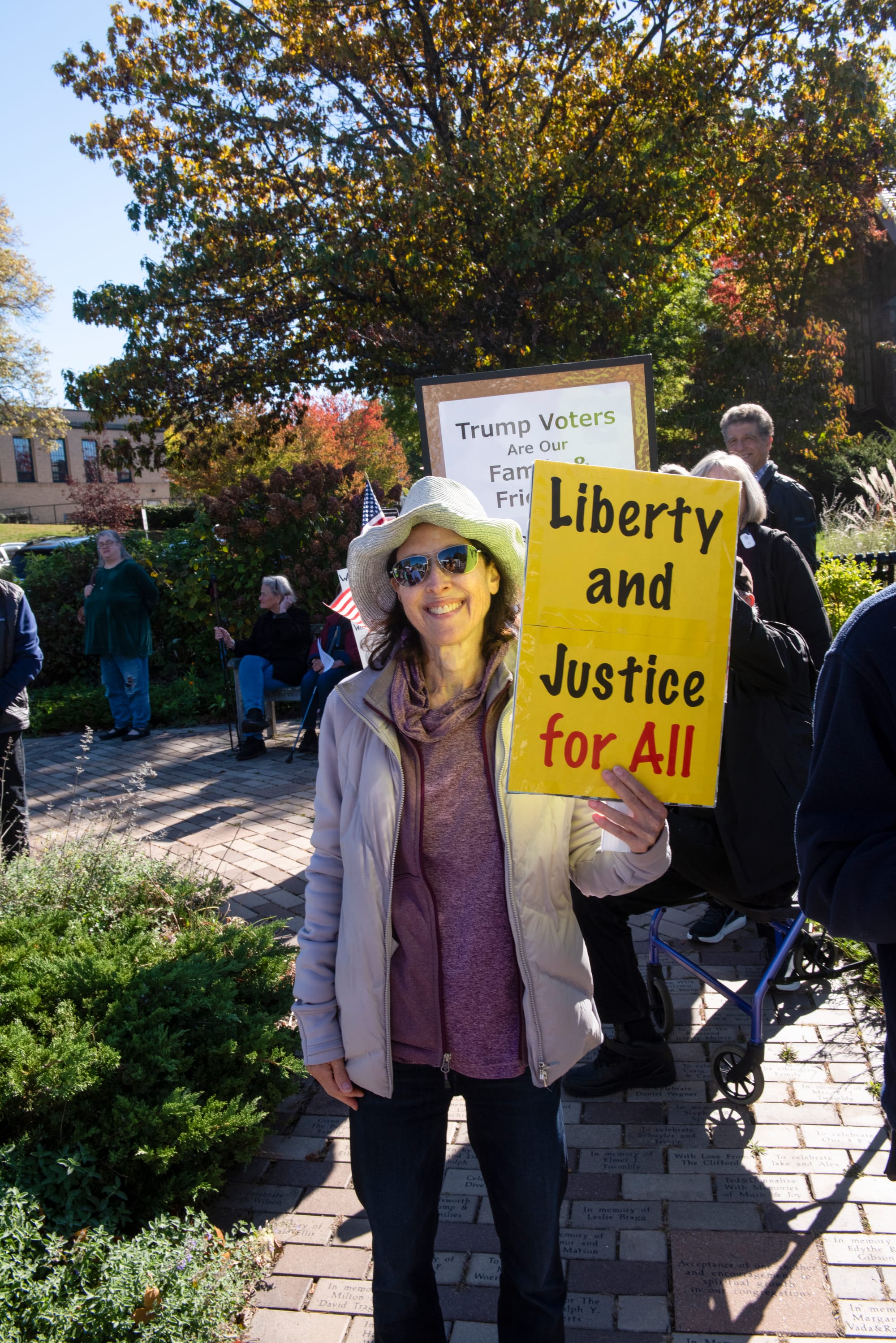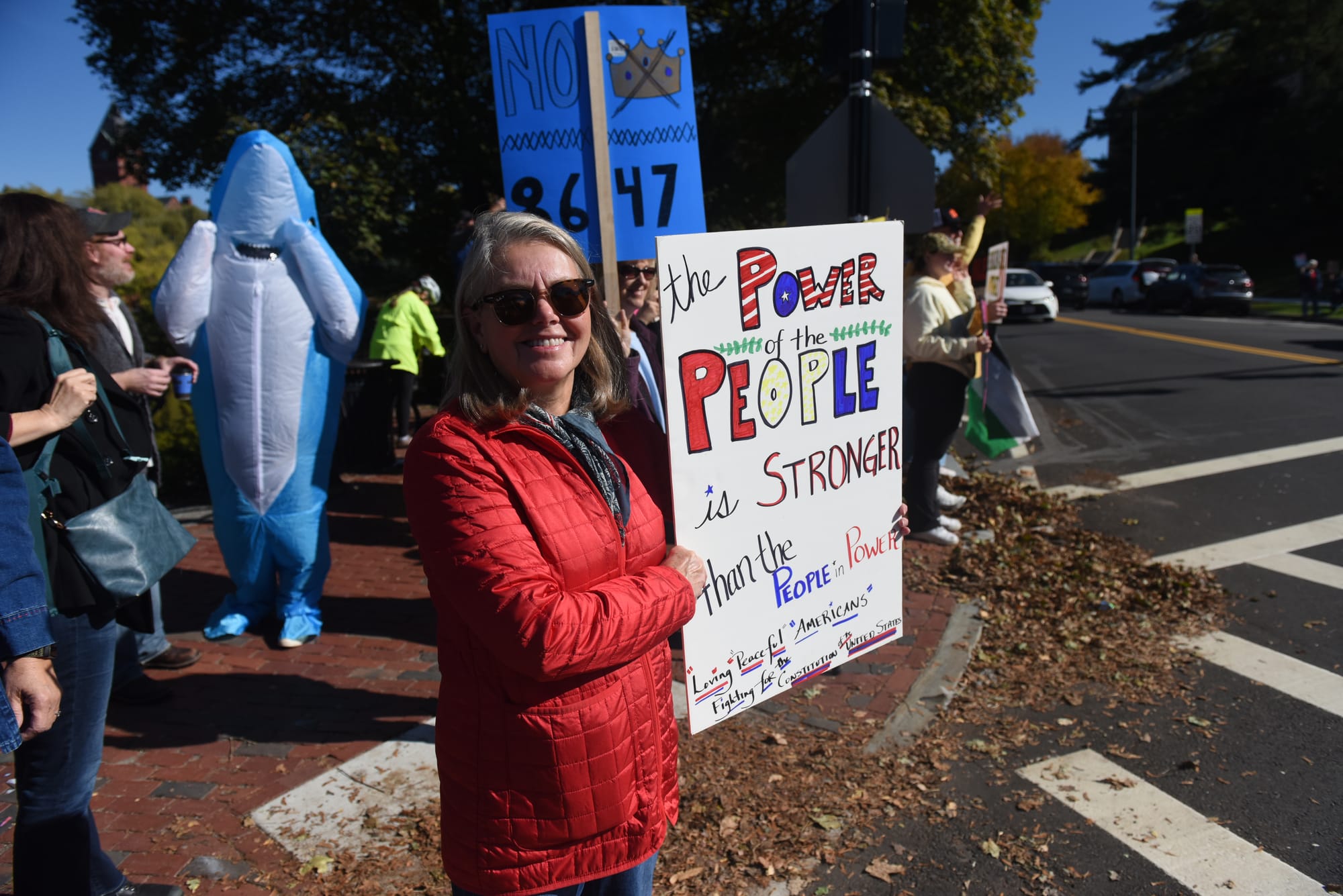 Showing up at the rally meant “doing something” for Daniel Smith, a 79-year-old resident of Medford. As he stood under a tree and held his sign against his chest, Smith questioned the basic civic learning he was taught that are the basis of the U.S. Constitution.