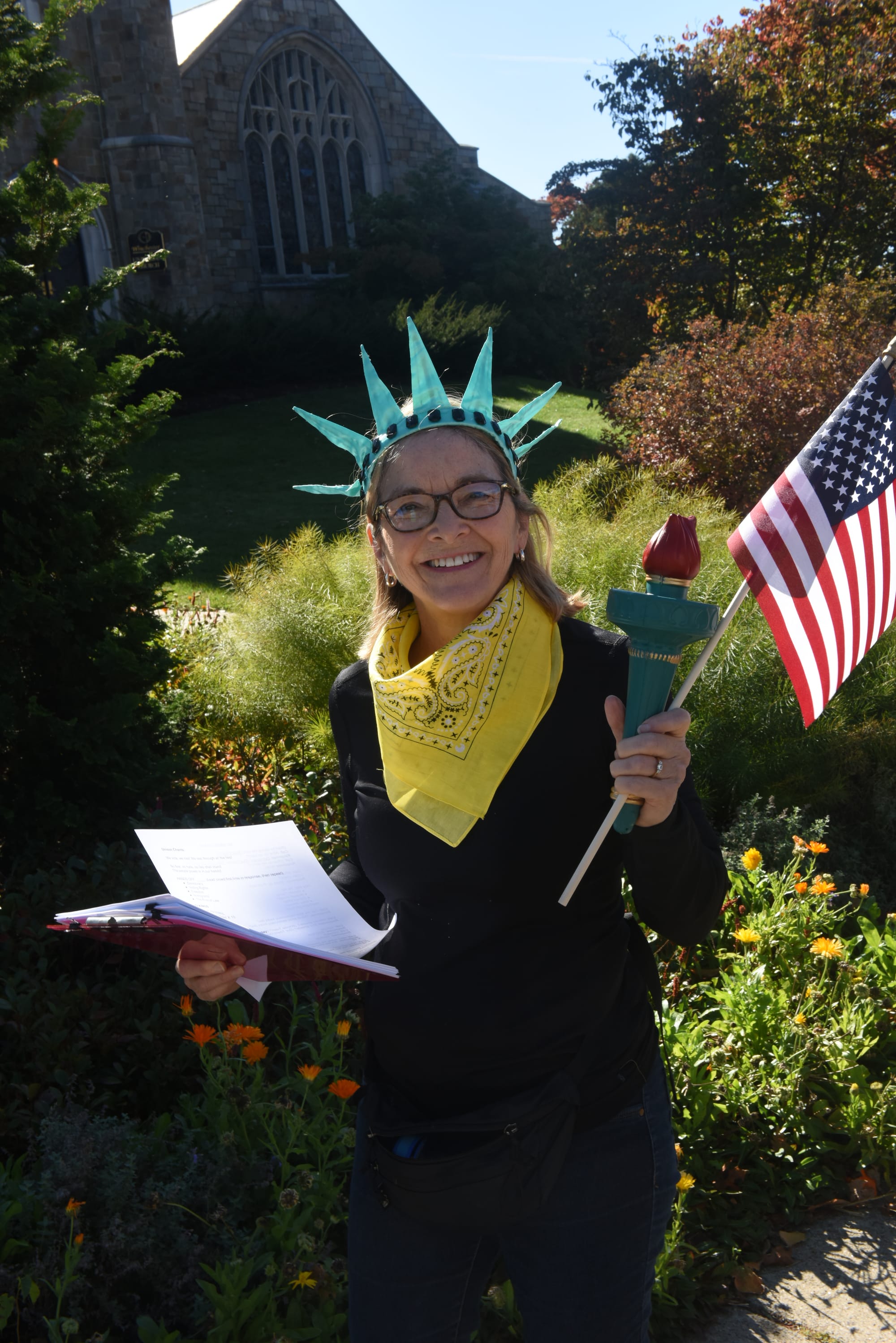 Indivisible Winchester’s (IndivisibleWIN) chief organizer Kim Whittaker said she wanted to emphasize that everyone loves America but protested out of concern.