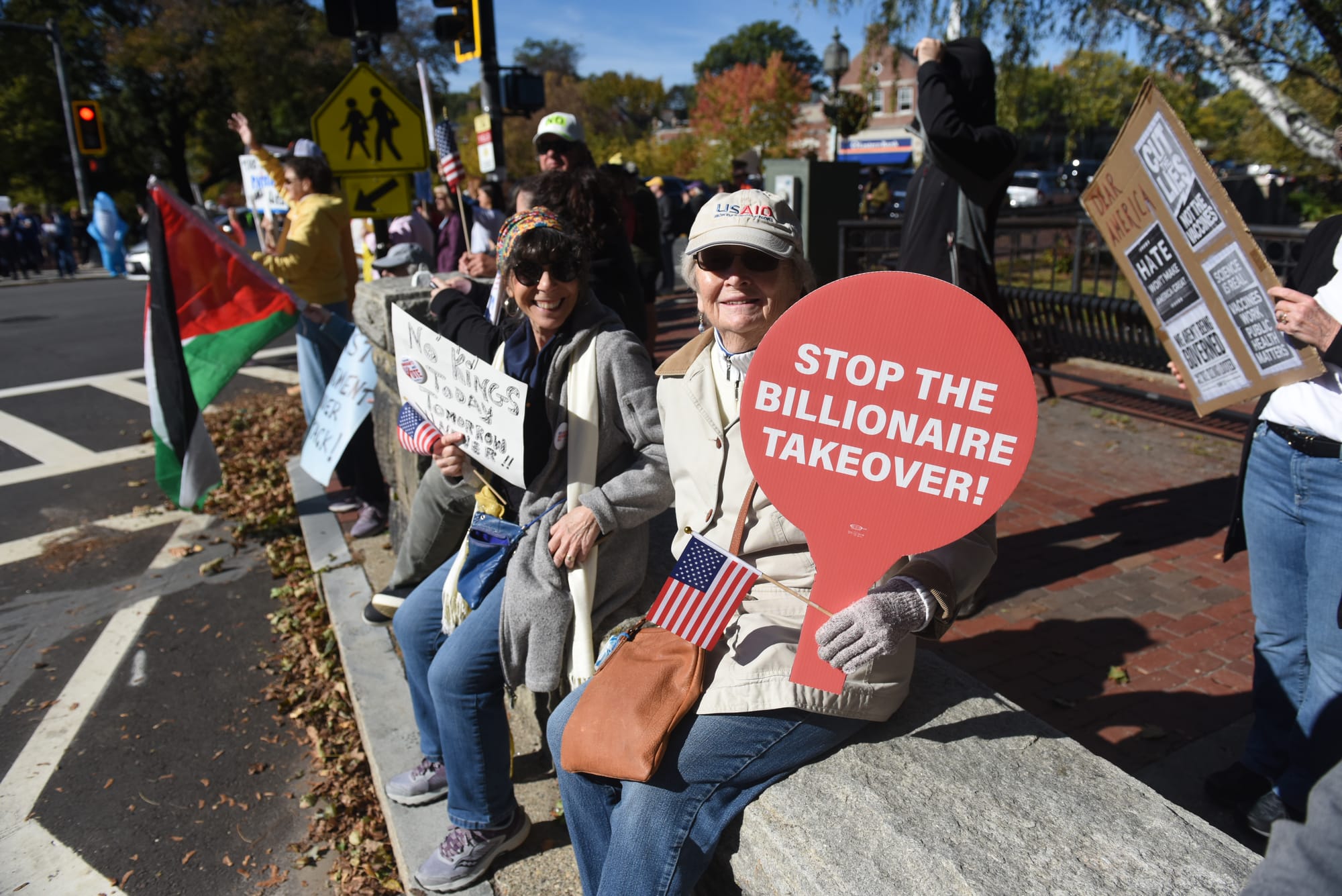 More than 800 people showed up in Winchester to protest the Trump administration. Protestors came from many different communities, including Medford, Lexington, Arlington and Bedford. COURTESY PHOTOS/WINCHESTER NEWS/RICHARD HOWARD