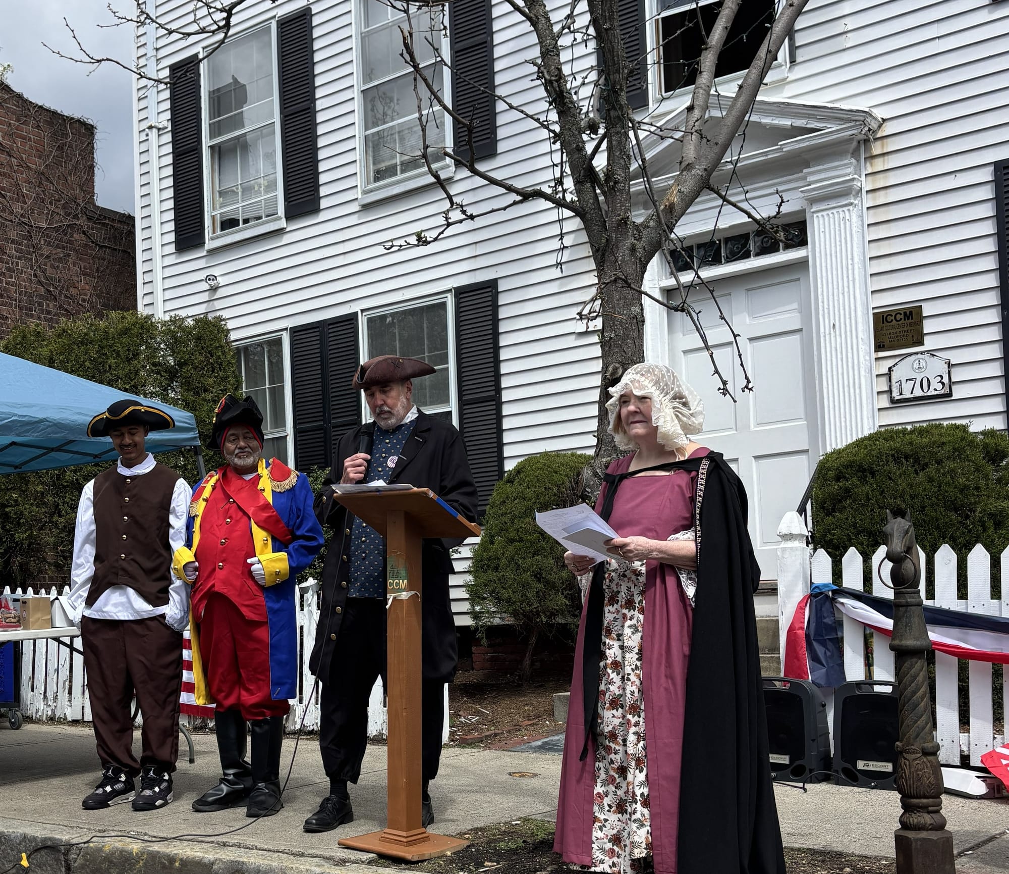 Revere gathered the crowd for a brief stop at the former home of Captain Isaac Hall at 43 High Street. After quizzing the crowd with a few trivia questions, Revere was sent off by a collective group, “Three huzzahs for Paul Revere. Huzzah, huzzah, huzzah!”