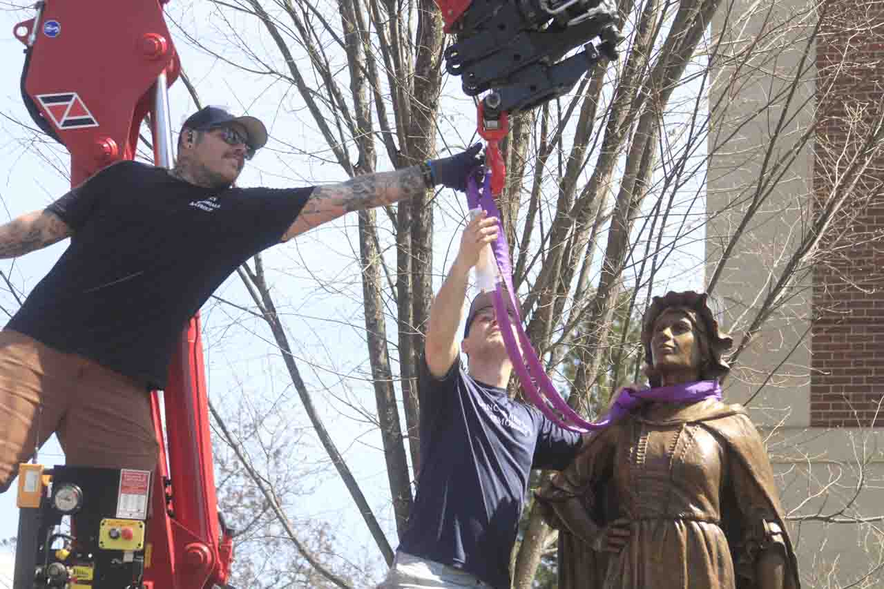 The statue of Sarah Bradlee Fulton was installed at Medford City Hall on April 14. It will be dedicated Monday, April 20, at 10:15 a.m.